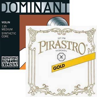 - Full Set includes All Ball-End Pirastro Gold Label Plain Steel E, Thomastik Dominant Aluminum Wound Perlon Core A,