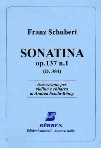 Originally composed for violin and piano as a set of three sonatinas, the Sonatina, Op. 137, No. 1 (D. 384) , is generally cheerful and lighthearted. It is a good example of Schubert's music for violin and piano. In this edition, the piano part has been transcribed for guitar by Andrea Sciola-König. Includes a score and parts, and a preface with notes on the piece (which, unfortunately, is only in Italian - no English translation). Published by Berben Edizioni Musicali. Difficulty: ASTA grade 4