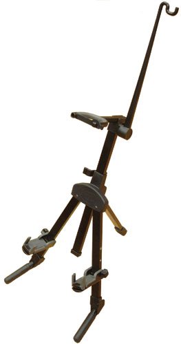 From the makers of the popular Peak Music Stands comes this easy to use instrument stand. Sets up in seconds and fits into the included easy to carry bag so you can bring it with you to rehearsal locations. Aluminum legs provide stability while rubberized supports protect your violin from scratches. Height can be adjusted to fit all violins and violas. Includes extendable bow holder.