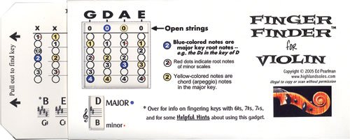 Finger patterns of all major scales and arpeggios are shown for 1st, 2nd and 3rd positions. Unique slide rule format.