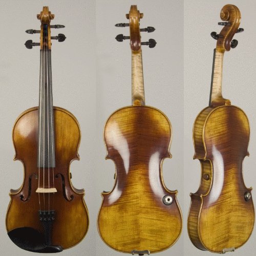 The Realist?? RV-4 Pro is an excellent choice for a player seeking an acoustic/electric with more tone color and sophistication in its amplified tone. The Pro model violin is of excellent quality, with a well-figured maple back and spruce top, somewhat more heavily antiqued than the standard RV-4. Oblong hard shell case is included. Sounds great acoustic or electric.